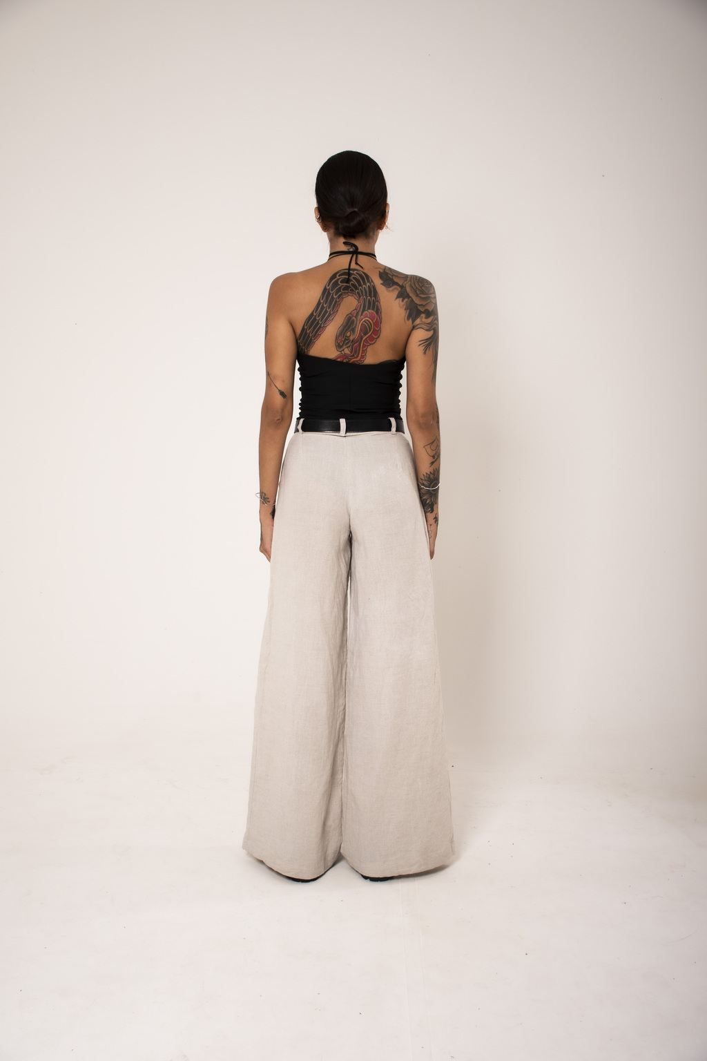 A calça de linho é a combinação perfeita de conforto e estilo. Com uma estrutura elegante, ela apresenta duas pregas nas costas que proporcionam um efeito de “empina bumbum”, realçando as curvas de maneira delicada. O botão frontal e os passadores de cinto adicionam um toque clássico, enquanto a boca mais larga traz um ar moderno e despretensioso à peça. Essa calça é ideal para qualquer ocasião, permitindo que você a use com diferentes composições.
